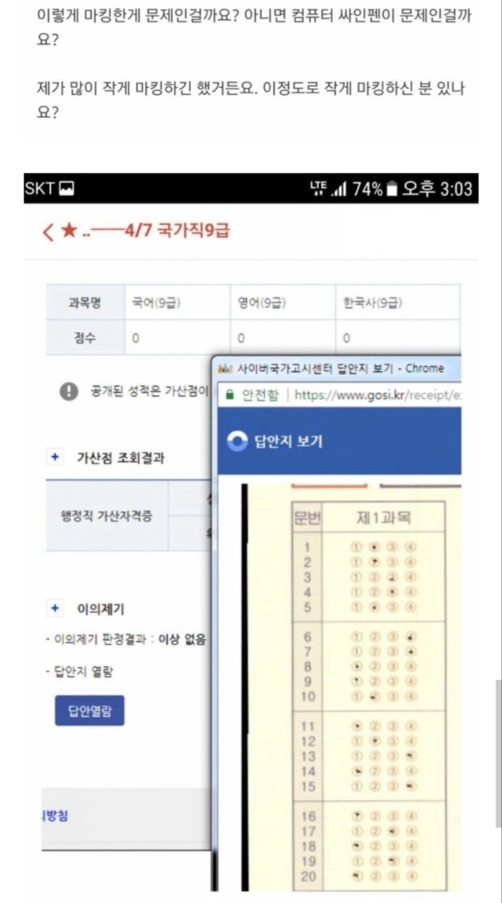 공무원 시험이 0점 처리 되었어요 작성자민정수석비서관|작성시간26.04.09|조회수15,431 목록 댓글 30 글자크기 작게가 글자크기 크게가 다음검색 현재 게시글 추가 기능 열기 북마크 공유하기 신고 센터로 신고 댓글 댓글 30 댓글쓰기 답글쓰기 댓글 리스트 작성자실용글쓰기 | 작성시간 26.04.09 뒤장보면 마킹 어떻게해야하는지 나옴 작성자두바이쫀득고구마 | 작성시간 26.04.09 14등급 15등급 작성자Sheldon | 작성시간 26.04.09 솔직히 저렇게 마킹했을때 진짜 인식 안될까 궁금했었는데ㅋㅋㅋ 작성자이엘렌 | 작성시간 26.04.09 아니 시험보기전에 오엠알에 저렇게 하지말라고 안내도해주는데 ㅋㅋ 작성자맬뱅 | 작성시간 26.04.09 4회말까지만 써봤네 댓글 전체보기