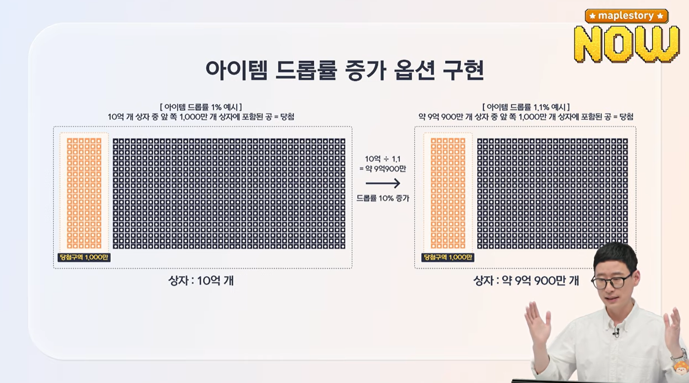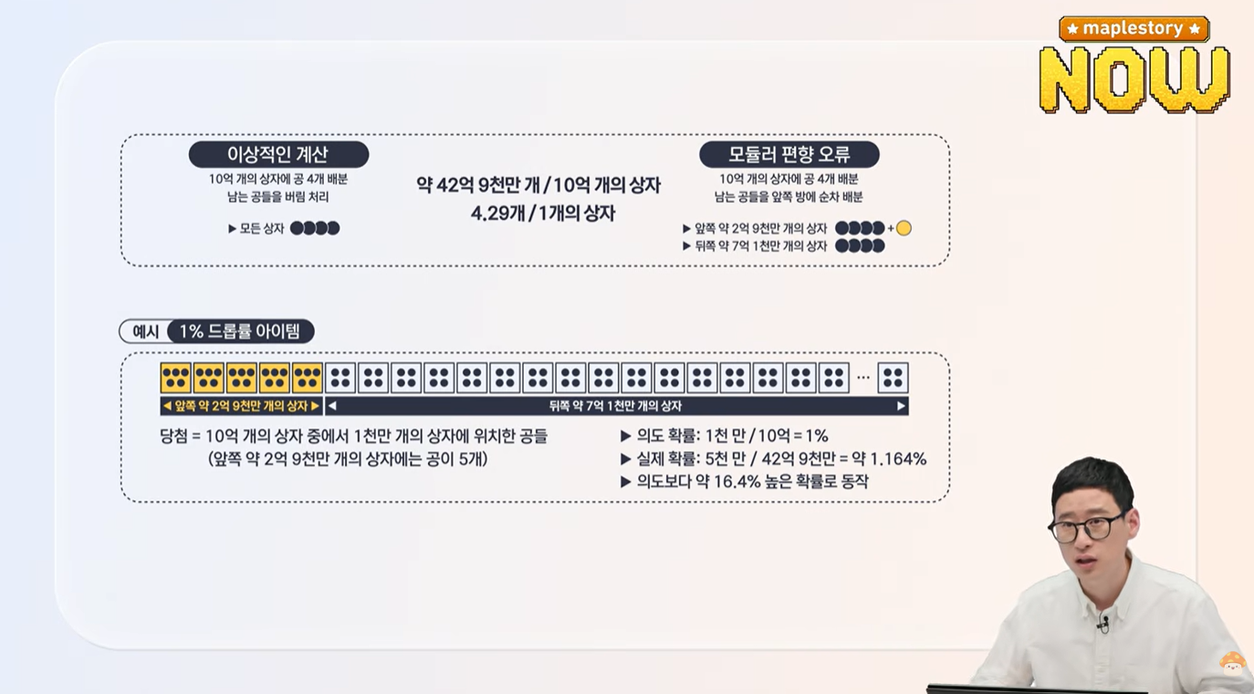 답댓글 작성자상태창 작성시간 26.04.09 더 쉽게 설명하자면 옛날 랜덤함수 코드를 사용하다보니까 완전한 랜덤이 아니라 드랍이 증가해서 적용되는 버그가있는데 그걸 고치면서 기존에 상향된 드랍률을 유지시킨다는것