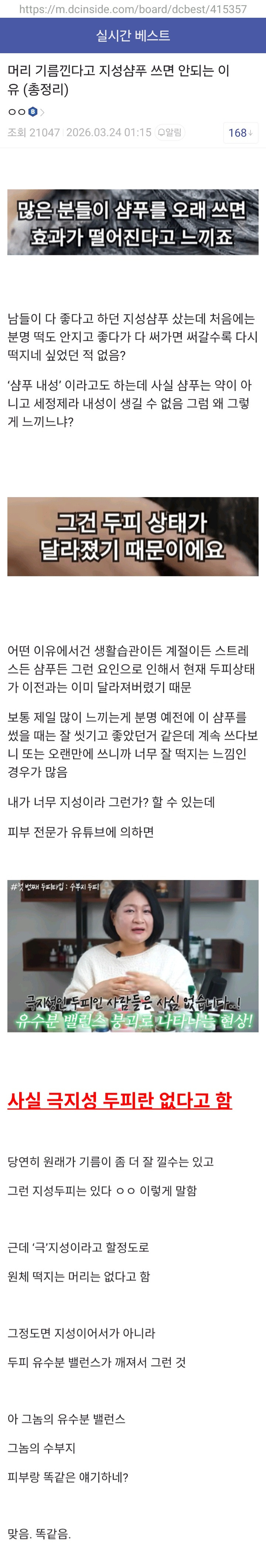 작성자붉사 작성시간 26.04.10 딱 최근에 느꼈음 헤드엔숄더 민트인가 쓰다가 레몬으로 바꿨는데 이상하게 빨리 떡지긴 했음