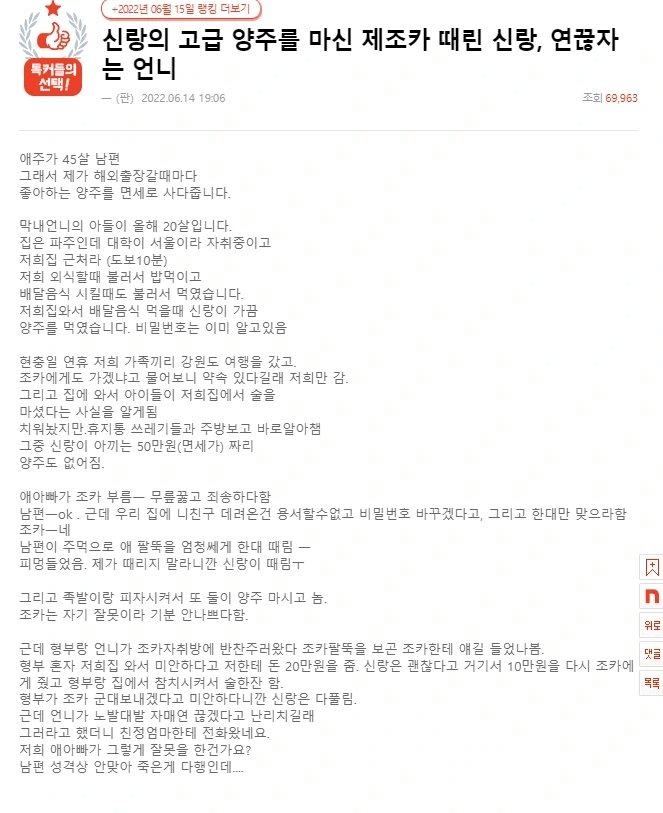 남편이고 자식이고 술 먹고 다니니까 그 쪽에 못 가게 하려는 술책인가? 이해를 할 수가 없네