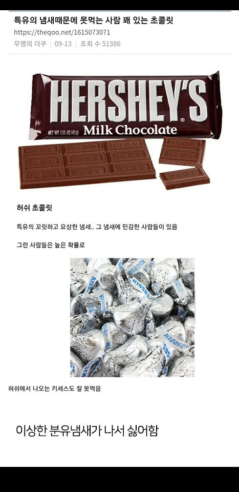 특유의 냄새때문에 못먹는 사람 꽤 있는 초콜릿 작성자go yoon jeong|작성시간26.04.10|조회수13,418 목록 댓글 7 글자크기 작게가 글자크기 크게가 다음검색 현재 게시글 추가 기능 열기 북마크 공유하기 신고 센터로 신고 댓글 댓글 7 댓글쓰기 답글쓰기 댓글 리스트 작성자루이바오 | 작성시간 26.04.10 짠맛남 ㅠ 작성자버밍타이거 | 작성시간 26.04.10 냄새 역함 그래서 빨리 입으로 넣어야 됨 작성자투투투투투투 | 작성시간 26.04.10 가나가 젤무난하던댕 작성자이모작 | 작성시간 26.04.10 토맛 답댓글 작성자야짤달리다짤린사람 | 작성시간 26.04.10 ㅅㅂㅋㅋㅋ 댓글 전체보기