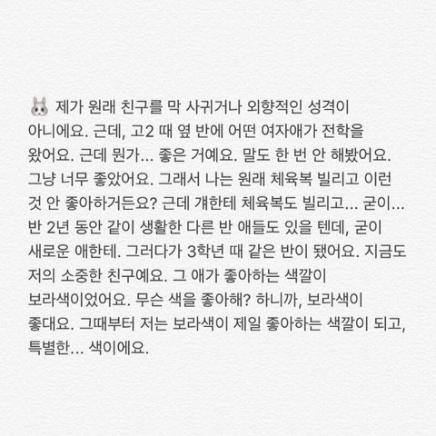 아이린의 보라색친구 작성자데이앤|작성시간26.04.11|조회수7,501 목록 댓글 2 글자크기 작게가 글자크기 크게가 다음검색 현재 게시글 추가 기능 열기 북마크 공유하기 신고 센터로 신고 댓글 댓글 2 댓글쓰기 답글쓰기 댓글 리스트 작성자아나그램 | 작성시간 26.04.11 좋아하는 색을 물었을 때넌 보라색 아니면 갈색이라 했지만 작성자나 따위가 무슨. | 작성시간 26.04.11 댓글 전체보기