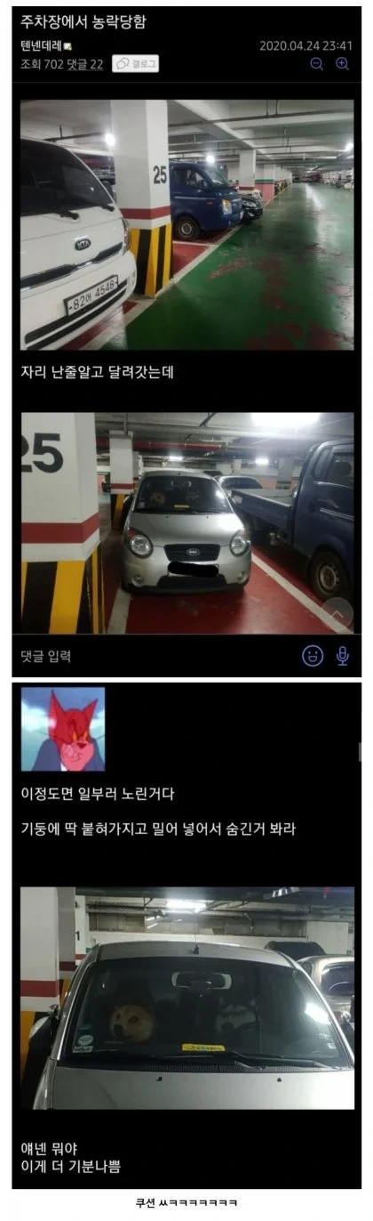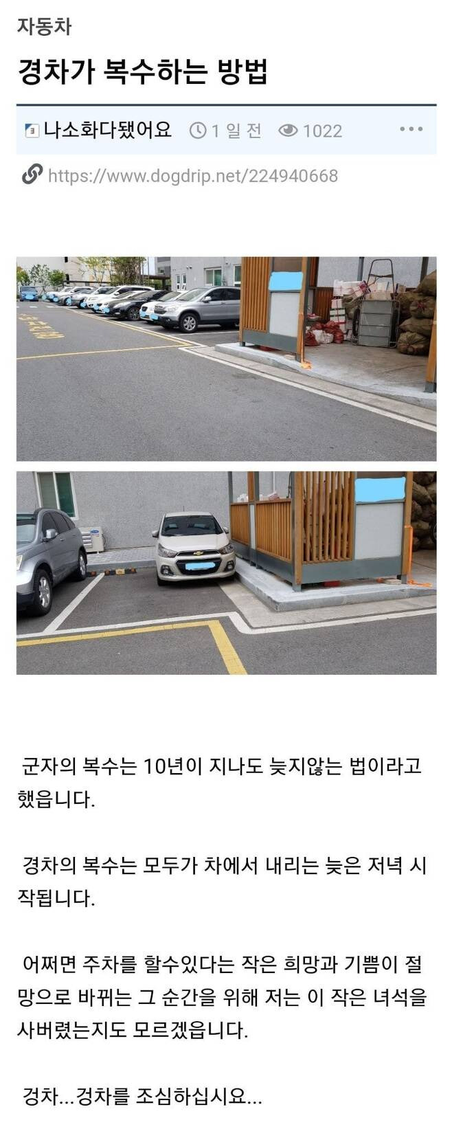 경차 차주가 복수하는 방법 작성자go yoon jeong|작성시간26.04.14|조회수2,143 목록 댓글 2 글자크기 작게가 글자크기 크게가 다음검색 현재 게시글 추가 기능 열기 북마크 공유하기 신고 센터로 신고 댓글 댓글 2 댓글쓰기 답글쓰기 댓글 리스트 작성자넌 나에게 꽃이고 난 너에게 꽂히다 | 작성시간 26.04.14 힝 속았지? 작성자타루 | 작성시간 26.04.14 이제 이런거보면 웃음나옴 ㅋㅋㅋㅋ 댓글 전체보기