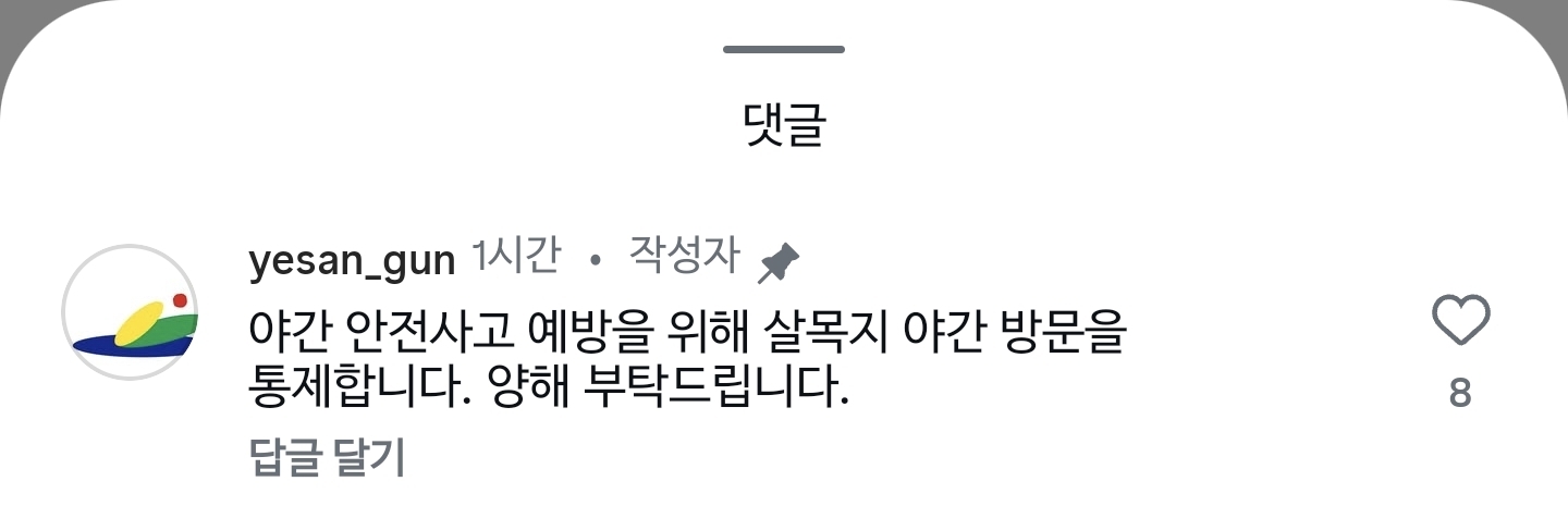 속보)살목지 야간방문 통제 작성자헤이즈 heize|작성시간26.04.14|조회수5,663 목록 댓글 7 글자크기 작게가 글자크기 크게가 다음검색 현재 게시글 추가 기능 열기 북마크 공유하기 신고 센터로 신고 댓글 댓글 7 댓글쓰기 답글쓰기 댓글 리스트 작성자모든것을꿰뚫어보는매의눈빛 | 작성시간 26.04.14 귀신도 잠은 자야지 작성자Diamond Queen | 작성시간 26.04.14 귀신이 민원넣었네 작성자┗마타지 | 작성시간 26.04.14 그런데도 현재 200여 대 가는 중 ㅋㅋㅋㅋ 이미지 확대 작성자인생노잼 사후세계는 있을까? | 작성시간 26.04.14 영화때문에 가는건가 개구라 괴담 믿고 가는건가 답댓글 작성자헬스짱짱 | 작성시간 26.04.15 걍 공포갬성 느끼려고 가는듯 댓글 전체보기