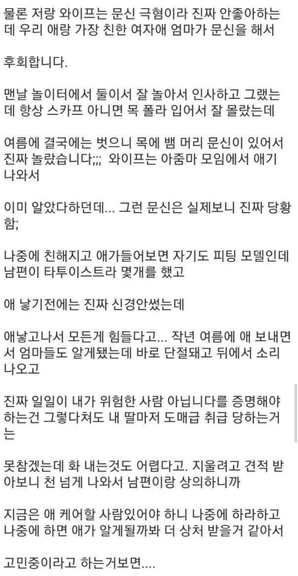 작성자버터플 작성시간 26.04.15 문신에 대한 인식이 엄청 안좋은데
