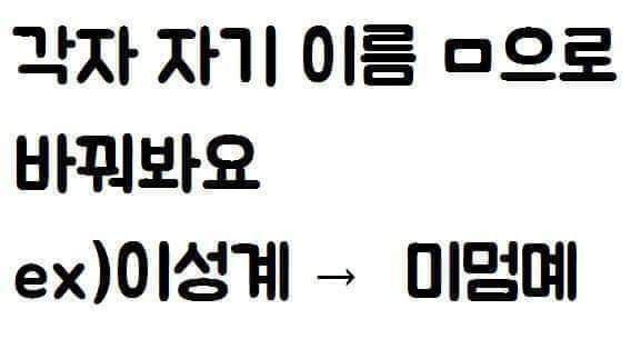 각자 자기이름 ㅁ으로바꾸기 작성자go yoon jeong|작성시간26.04.14|조회수2,764 목록 댓글 36 글자크기 작게가 글자크기 크게가 다음검색 현재 게시글 추가 기능 열기 북마크 공유하기 신고 센터로 신고 댓글 댓글 36 댓글쓰기 답글쓰기 댓글 리스트 작성자정유노 | 작성시간 26.04.15 멈뮴모 작성자카에데 카렌 | 작성시간 26.04.15 ㅎ에 들어가는 ㅇ은 어떻게 바꾸지 고민하고 있었네 작성자바람부는언덕 | 작성시간 26.04.15 뫔몀멈 작성자ㄹ악귀 | 작성시간 26.04.15 미믐뭠 작성자카피바라 | 작성시간 26.04.15 맘몀멈 댓글 전체보기