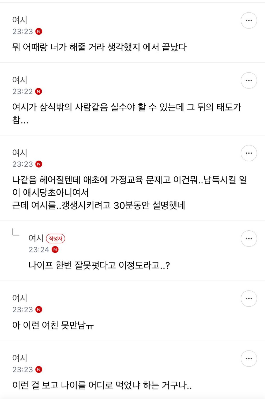 와플 먹다 싸웠는데, 이게 그렇게 싸울일이야? 작성자민정수석비서관|작성시간26.04.15|조회수3,240 목록 댓글 26 글자크기 작게가 글자크기 크게가 다음검색 현재 게시글 추가 기능 열기 북마크 공유하기 신고 센터로 신고 댓글 댓글 26 댓글쓰기 답글쓰기 댓글 리스트 작성자마들렘 | 작성시간 26.04.15 병신 진짜 ㅋㅋㅋ 작성자INTJ | 작성시간 26.04.15 누구나 실수는 할 수 있는데 실수를 했으면 수습을 해야지여기서 능지차이가 보이는거 작성자아연 | 작성시간 26.04.15 태운건 남친에게~새로 구운건 내꺼~ 작성자흐긴 | 작성시간 26.04.15 하 진짜싫어 저건실수도 아님 작성자골이 따분한 성격 | 작성시간 26.04.15 저딴것도 꼴에 여자라고 주도권 가지려고 하는 짓이 진짜 개열받네 댓글 전체보기