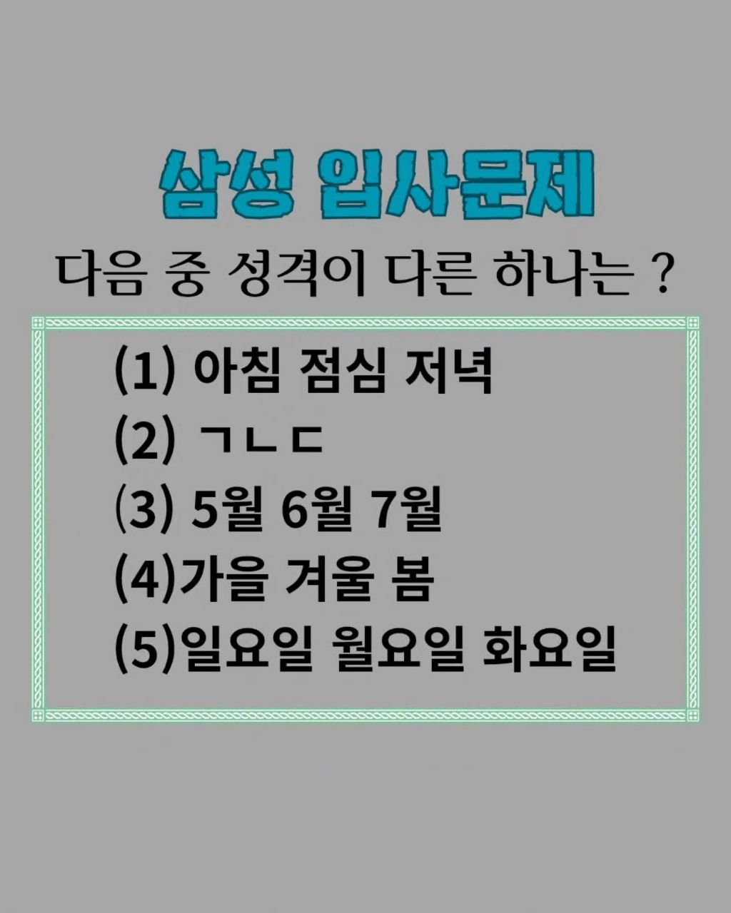 삼성 입사문제 작성자go yoon jeong|작성시간26.04.15|조회수9,345 목록 댓글 29 글자크기 작게가 글자크기 크게가 다음검색 현재 게시글 추가 기능 열기 북마크 공유하기 신고 센터로 신고 댓글 댓글 29 댓글쓰기 답글쓰기 댓글 리스트 작성자송중기 | 작성시간 26.04.15 2번이 초성퀴즈라서 정답 작성자Paul Labile Pogba | 작성시간 26.04.15 1번 중의적 의미로 활용 가능 작성자심심해배고파 | 작성시간 26.04.15 4 작성자Function(팡션) | 작성시간 26.04.15 다 정답으로 갖다붙일꺼같긴한데내 풍둔아가리술로는 2번 작성자물음표느낌표 | 작성시간 26.04.15 2번 나머지는 시간 댓글 전체보기