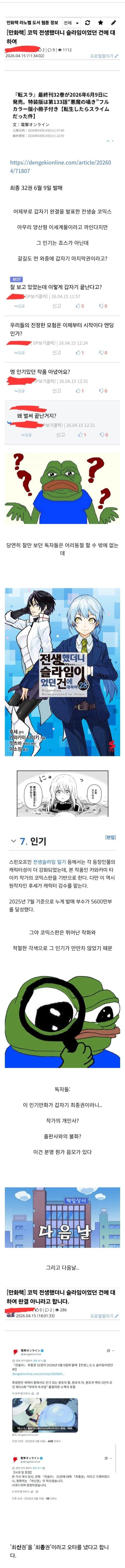 만화 전생 슬라임이 갑자기 완결을 발표한 이유 작성자존예보스예지|작성시간26.04.15|조회수3,377 목록 댓글 5 글자크기 작게가 글자크기 크게가 작가도 몰랐던 완결 소식 다음검색 현재 게시글 추가 기능 열기 북마크 공유하기 신고 센터로 신고 댓글 댓글 5 댓글쓰기 답글쓰기 댓글 리스트 작성자악성재고 | 작성시간 26.04.15 ㅋㅋㅋㅋㅋㅋㅋㅋㅋㅋㅋㅋㅋㅋㅋㅋㅋㅋㅋㅋㅋㅋ 작성자나엔 | 작성시간 26.04.15 ㅋㅋㅋㅋㅋㅋㅋㅋ 작성자돌태형OUT | 작성시간 26.04.15 ㅋㅋㅋㅋㅋㅋㅋㅋㅋㅋㅋㅋㅋㅋㅋㅋㅋ 작성자푸도그 | 작성시간 26.04.15 ㅋㅋㅋㅋㅋ 작성자쥐돌이의하루 | 작성시간 26.04.16 ㅋㅋㅋㅋㅋㅋㅋㅋㅋㅋㅋㅋㅋㅋㅋㅋ 개어이없네 ㅋㅋㅋㅋㅋㅋㅋㅋㅋㅋ 댓글 전체보기