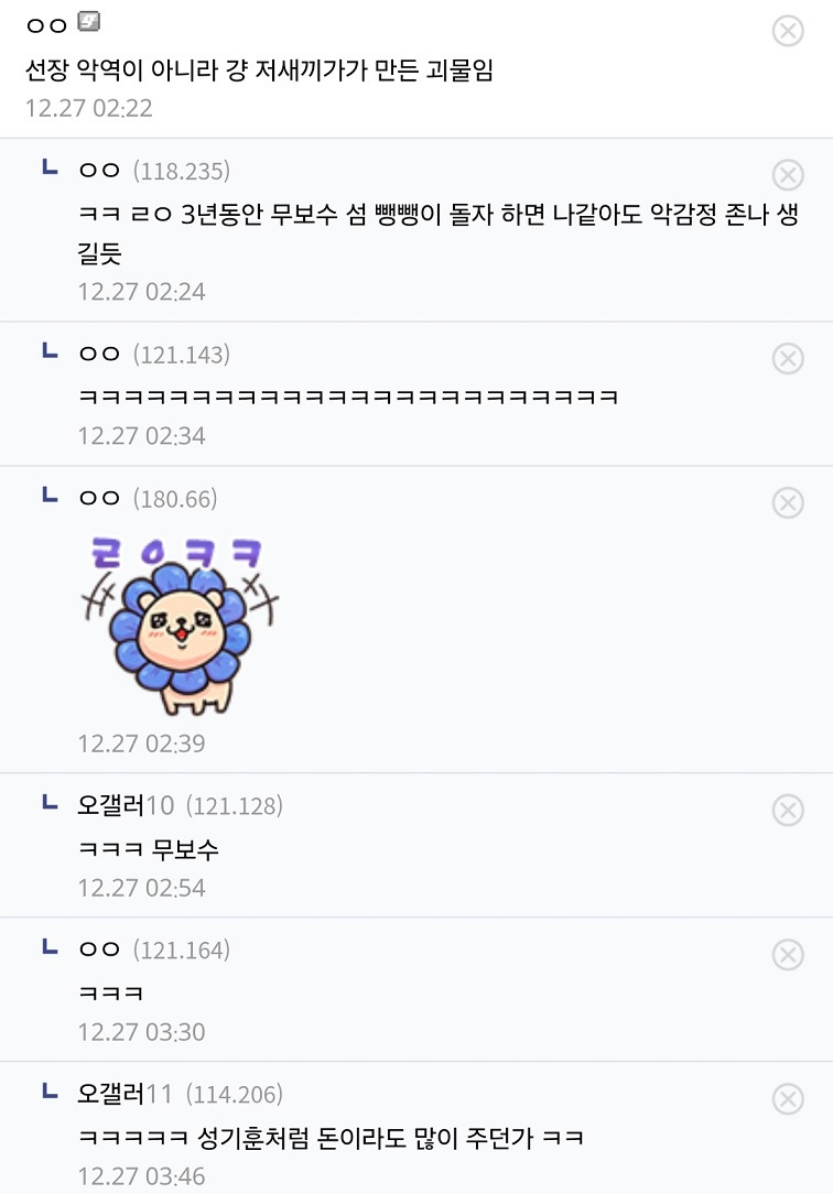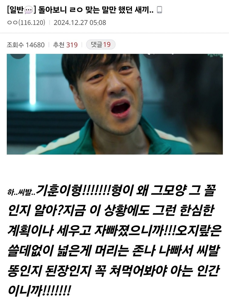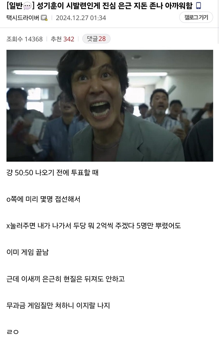[스포주의] 오징어게임 갤러리ㅋㅋㅋㅋㅋㅋㅋ 작성자This Is Valley|작성시간24.12.30|조회수21,650 목록 댓글 81 글자크기 작게가 글자크기 크게가 다음검색 현재 게시글 추가 기능 열기 북마크 공유하기 신고 센터로 신고 댓글 댓글 81 댓글쓰기 답글쓰기 댓글 리스트 작성자소년의꿈911 | 작성시간 25.01.03 ㅋㅋㅋㅋㅋㅋㅋ 작성자팜토르 | 작성시간 25.01.04 ㅋㅋㅋㅋㅋㅋㅋㅋㅋㅋㅋㅋㅋㅋㅋㅋㅋㅋㅋㅋㅋㅋㅋㅋㅋㅋㅋㅋㅋㅋㅋㅋㅋㅋㅋㅋㅋㅋㅋ 작성자진짜루다가 | 작성시간 25.01.07 ㅋㅋㅋㅋㅋㅋㅋㅋㅋㅋㅋㅋㅋㅋ 작성자우정잉 | 작성시간 25.01.11 ㅋㅋㅋㅋ 작성자돌솥밥 | 작성시간 25.01.13 역배가 씹 ㅋㅋㅋㅋㅋㅋㅋㅋㅋㅋㅋㅋㅋㅋㅋㅋㅋ 댓글 전체보기