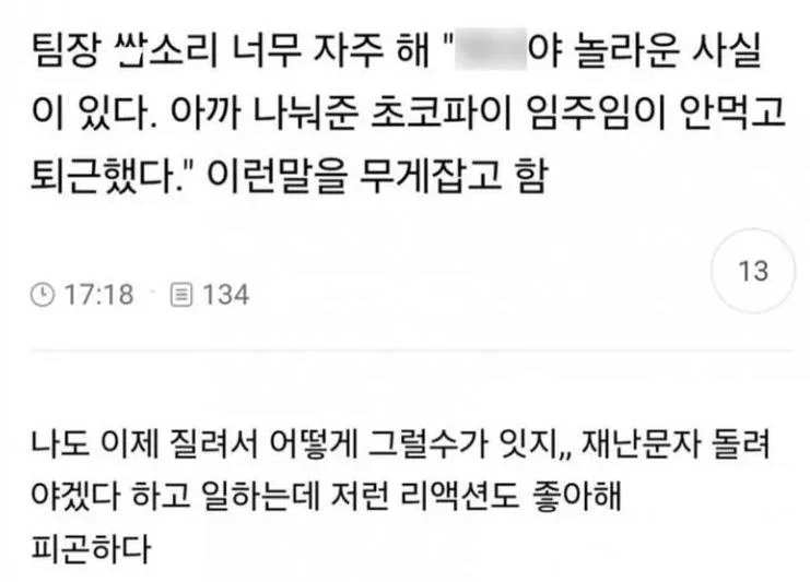 도탁스 (DOTAX) 팀장 헛소리 너무 자주해 작성시간26.02.24|조회수74,377 목록 댓글 53 글자크기 작게가 글자크기 크게가 다음검색 현재 게시글 추가 기능 열기 북마크 공유하기 신고 센터로 신고 댓글 53 댓글 리스트 작성시간 26.03.06 반응 미쳤네 와 ㅋㅋ 작성시간 26.03.09 zzzzzzzzzzzzzzzzz 작성시간 26.03.10 ㅋzzzzzz 작성시간 26.03.11 니가 꼬셨잖아 ㅋㅋ 작성시간 26.03.13 너 때문이잖앜ㅋㅋㅋㅋㅋㅋㅋㅋㅋㅋㅋㅋㅋ 카페 방문해 더 많은 댓글 만나기!