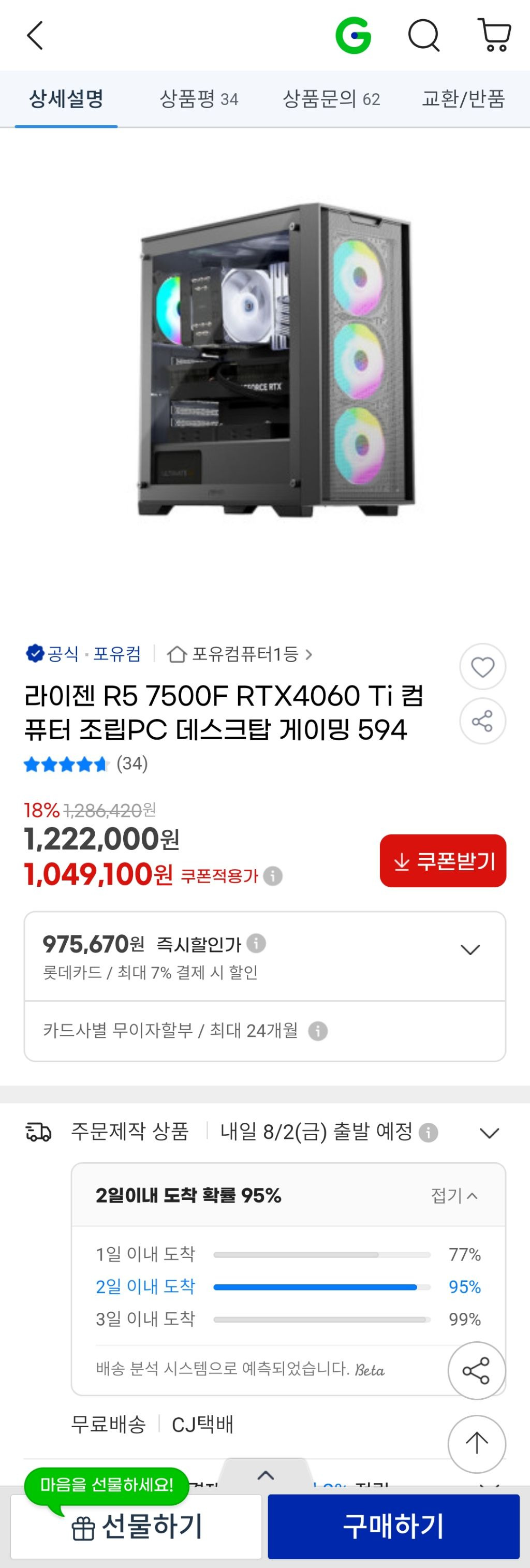완본체라는게 원래 좀 싼 부품들 몇개 섞어서 싼맛에 쓰는 거라서 컴퓨존 구입하실 거면 그냥 견적내서 조립하시는 걸 추천드려요