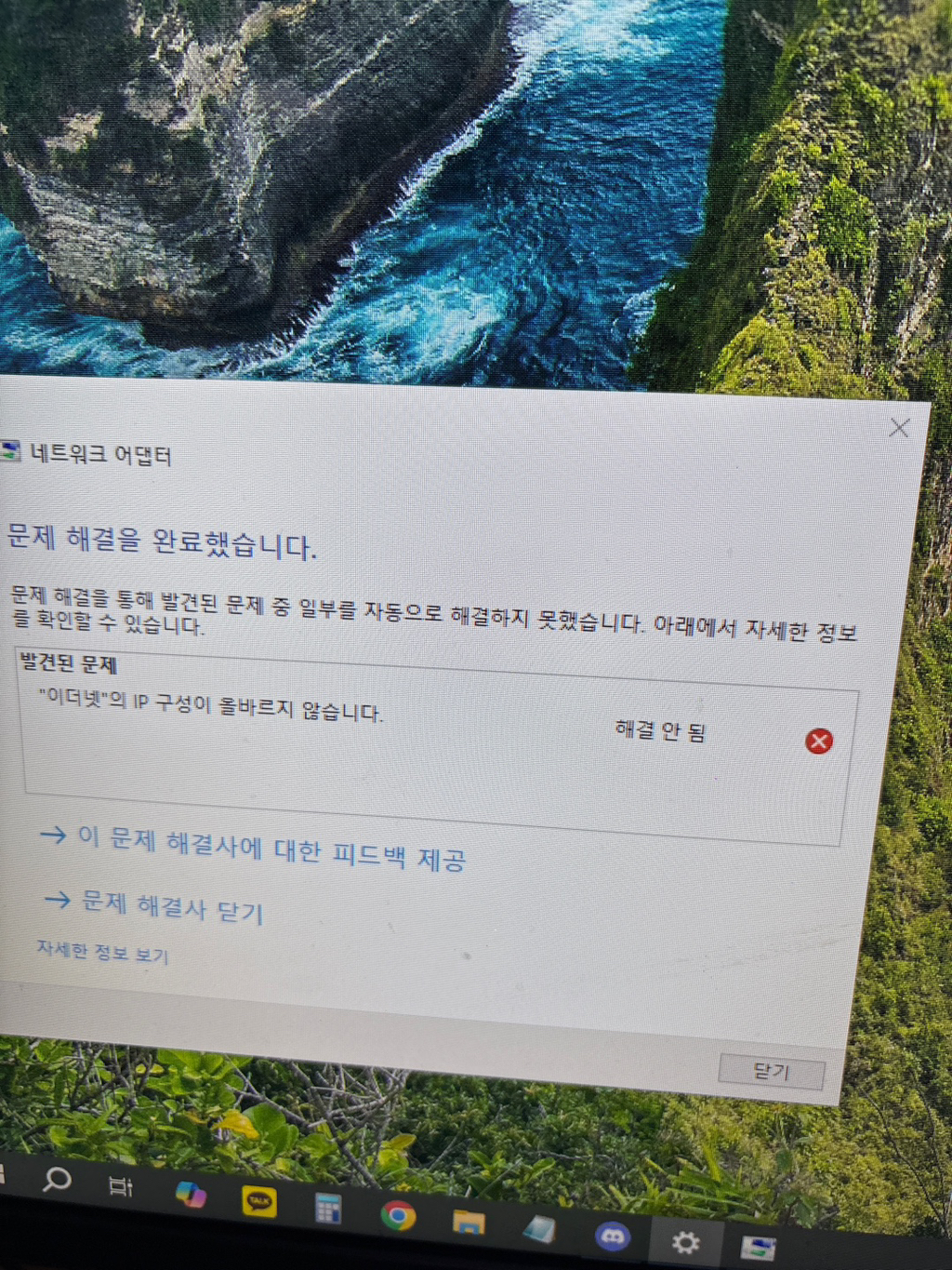 모뎀없이 와이파이 기기에 데스크탑이랑 연결해서 인터넷 사용중이였던거 같은데 랜선 한번 빠진 후 다시 연결했는데 그 이후부터 인터넷 사용이 안되네요