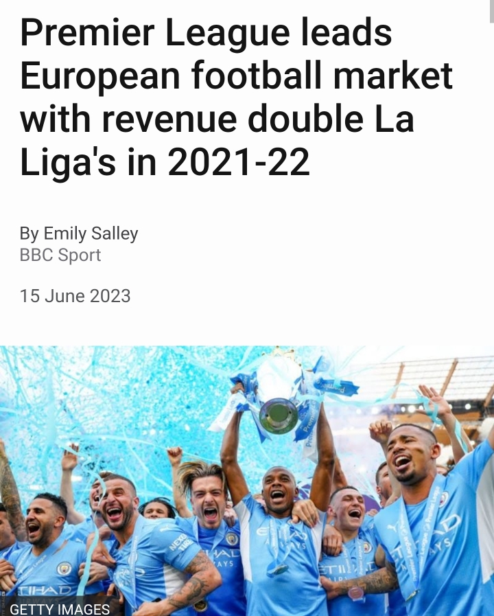 2위. 라리가 - 28억 파운드(4조 5,300억원)