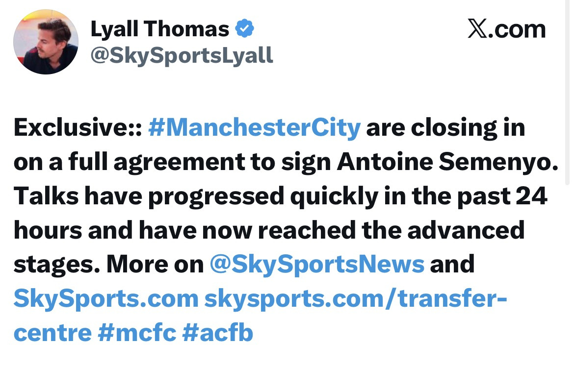 [리얄 토마스-독점] 맨시티, 세메뇨 영입 거의 완료 작성자Indigoblin|작성시간25.12.31|조회수121 목록 댓글 2 글자크기 작게가 글자크기 크게가 지난 24시간 동안 협상이 빠르게 진행되어 최종 단계 진입출처: https://x.com/skysportslyall/status/2006002422318248094?s=46 다음검색 현재 게시글 추가 기능 열기 북마크 공유하기 신고 센터로 신고 댓글 댓글 2 댓글쓰기 답글쓰기 댓글 리스트 작성자개막장이다 | 작성시간 25.12.31 안대ㅐㅐㅐㅐㅐㅐㅐㅐㅐㅐㅐㅐ 작성자아이고서현아 | 작성시간 25.12.31 뭔 콥메뇨여걍 스탠스 애매하다고 느끼자마자 희망 버렸음 ㅋㅋ 댓글 전체보기
