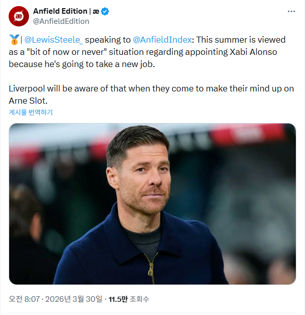 [루이스 스틸] 리버풀은 알론소 선임에 관해 “지금 아니면 안된다” 라고 판단하고 있슴 작성자No.9 Firmino|작성시간26.03.30|조회수302 목록 댓글 6 글자크기 작게가 글자크기 크게가 그도 새로운 팀을 구할 것이기 때문,슬롯의 거취를 결정 할 때 이 부분도 고려할 것이다.근데 왜이렇게 느긋해;; 다음검색 현재 게시글 추가 기능 열기 북마크 공유하기 신고 센터로 신고 댓글 댓글 6 댓글쓰기 답글쓰기 댓글 리스트 작성자빛날윤 | 작성시간 26.03.30 시즌 끝나고 경질이 정배인듯 작성자니바스 | 작성시간 26.03.30 챔스가면 오기로 약속했지? 작성자정통추리왕 | 작성시간 26.03.30 걍 챔스우승 아니면 무조건 경질임 슬롯 작성자핵꿀쟁 | 작성시간 26.03.30 아무래도 시즌종료 후 경질인듯... 작성자미스터김피탕 | 작성시간 26.03.30 슬롯 경질 할 명분이 없어 지금 ㅜ 댓글 전체보기