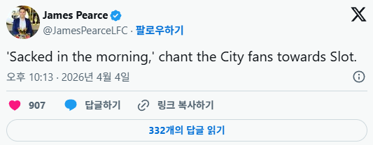 답댓글 작성자wished 작성시간 26.04.04 이뭉게 시즌 종료 후 에드워즈 fsg멀티구단 프로젝트 엎어지고 사임, 휴즈 사우디 런, 슬롯 연임(클럽이 혼란스러워 변화 하기 힘들다고 언플하며)까지 보인다 보여 ㅋㅋㅋㅋㅋㅋㅋ