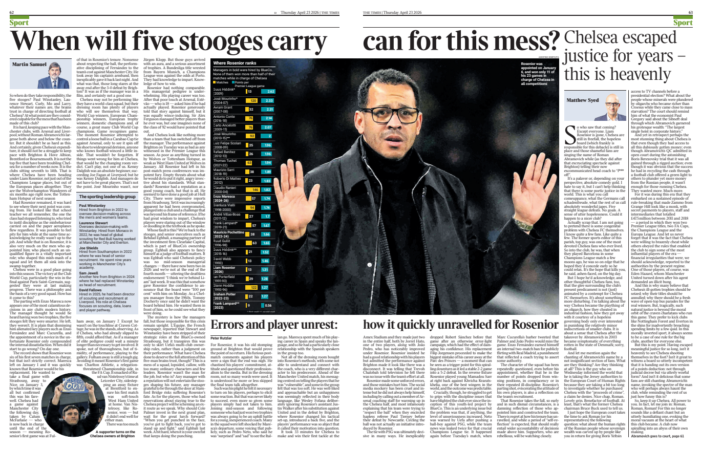 로세니어는 맨유전을 앞두고 선수들에게 자신이 “취약하다”라는 메시지를 전달했는데, 일부 선수들은 이를 지나치게 약한 태도로 받아들였다. 그는 호감형 감독이었고 다가가기 쉬운 사람이었지만, 선수들의 불만은 몸짓에서 드러났다.