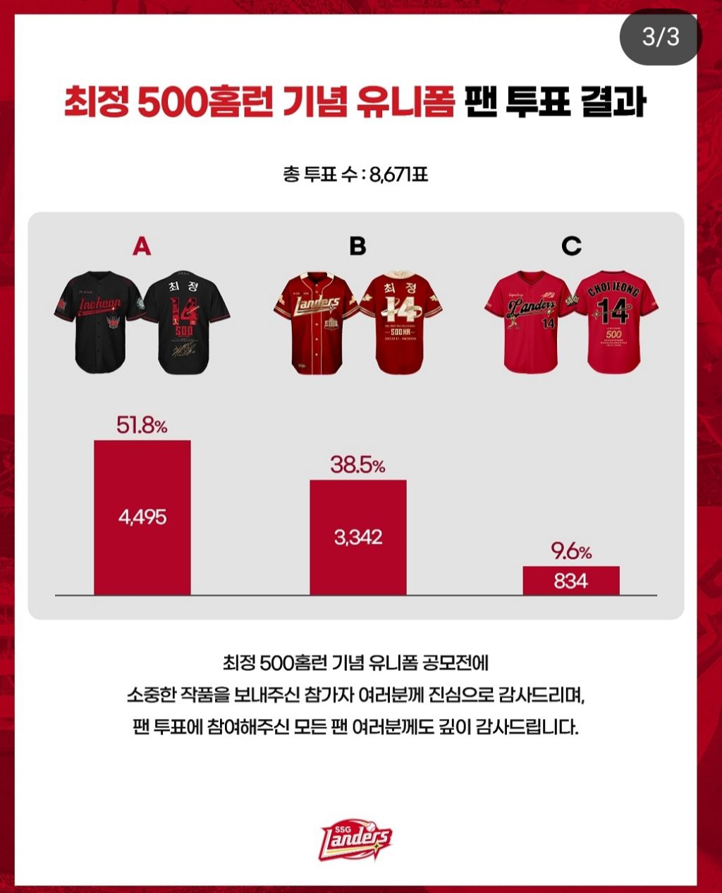 도탁스 (DOTAX) [SSG]최정 500홈런 유니폼 개표결과 작성시간25.06.03|조회수4,401 목록 댓글 8 글자크기 작게가 글자크기 크게가 다음검색 현재 게시글 추가 기능 열기 북마크 공유하기 신고 센터로 신고 댓글 8 댓글 리스트 작성시간 25.06.03 흐음... 작성시간 25.06.03 아 이거말고 탈락한게 이뻤는데 작성시간 25.06.03 이쁘다 작성시간 25.06.03 유니폼안사는데 이건해볼까.. 작성시간 25.06.04 정해영 세이브랑 비슷하네 검빨은 신인가 카페 방문해 더 많은 댓글 만나기!