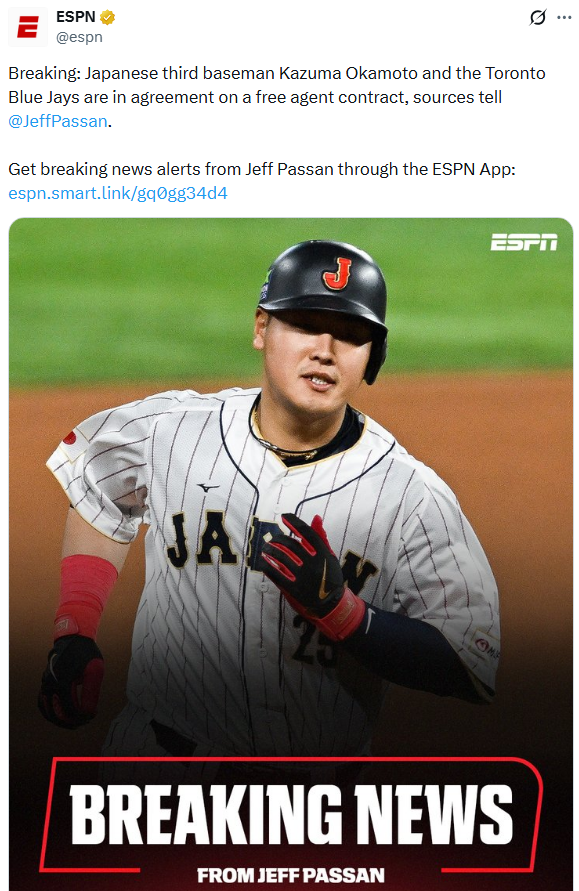 [해외야구]오카모토 카즈마 - 토론토 블루제이스와 계약 작성자Melo|작성시간26.01.04|조회수257 목록 댓글 4 글자크기 작게가 글자크기 크게가 다음검색 현재 게시글 추가 기능 열기 북마크 공유하기 신고 센터로 신고 댓글 댓글 4 댓글쓰기 답글쓰기 댓글 리스트 작성자내꿈은롯데우승보ㄱI | 작성시간 26.01.04 4y 60m은 ㄹㅇ 개비싸네 30대에 수비 평타치는 내야수를 이미지 확대 작성자이글레이커 | 작성시간 26.01.04 1루는 블게주가 있으니 3루 쓰려나.. 작성자qudtlstor2 | 작성시간 26.01.04 6 113은.진짜 답댓글 작성자내꿈은롯데우승보ㄱI | 작성시간 26.01.04 ㅇㅅㅈㅇㄷㅅ 댓글 전체보기