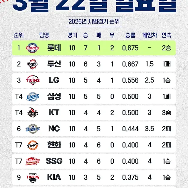 [KT]시범경기인데 순위 구분도 해주는군요 작성자gkqwndrnr|작성시간26.03.22|조회수301 목록 댓글 4 글자크기 작게가 글자크기 크게가 의미는 없겠다만.우리팀 이해가 안가네. 얼마전만 해도 1승이라도 하면 다행이라고 생각했는데 왜 갑자기 3연승 찍는거냐?? 다음검색 현재 게시글 추가 기능 열기 북마크 공유하기 신고 센터로 신고 댓글 댓글 4 댓글쓰기 답글쓰기 댓글 리스트 작성자여자친구는버디 | 작성시간 26.03.22 균형의 삼성전술의 KT 작성자키움히어로즈 | 작성시간 26.03.23 new 한팀이없네요 답댓글 작성자gkqwndrnr 작성자 본인 여부 작성자 | 작성시간 26.03.23 new 그냥 복붙했더니 짤려있네요.무슨 의도는 없습니다 답댓글 작성자키움히어로즈 | 작성시간 26.03.23 new gkqwndrnr 아아 그런게아니라ㅠ저희팀이개같이못해서슬퍼서 댓글 전체보기