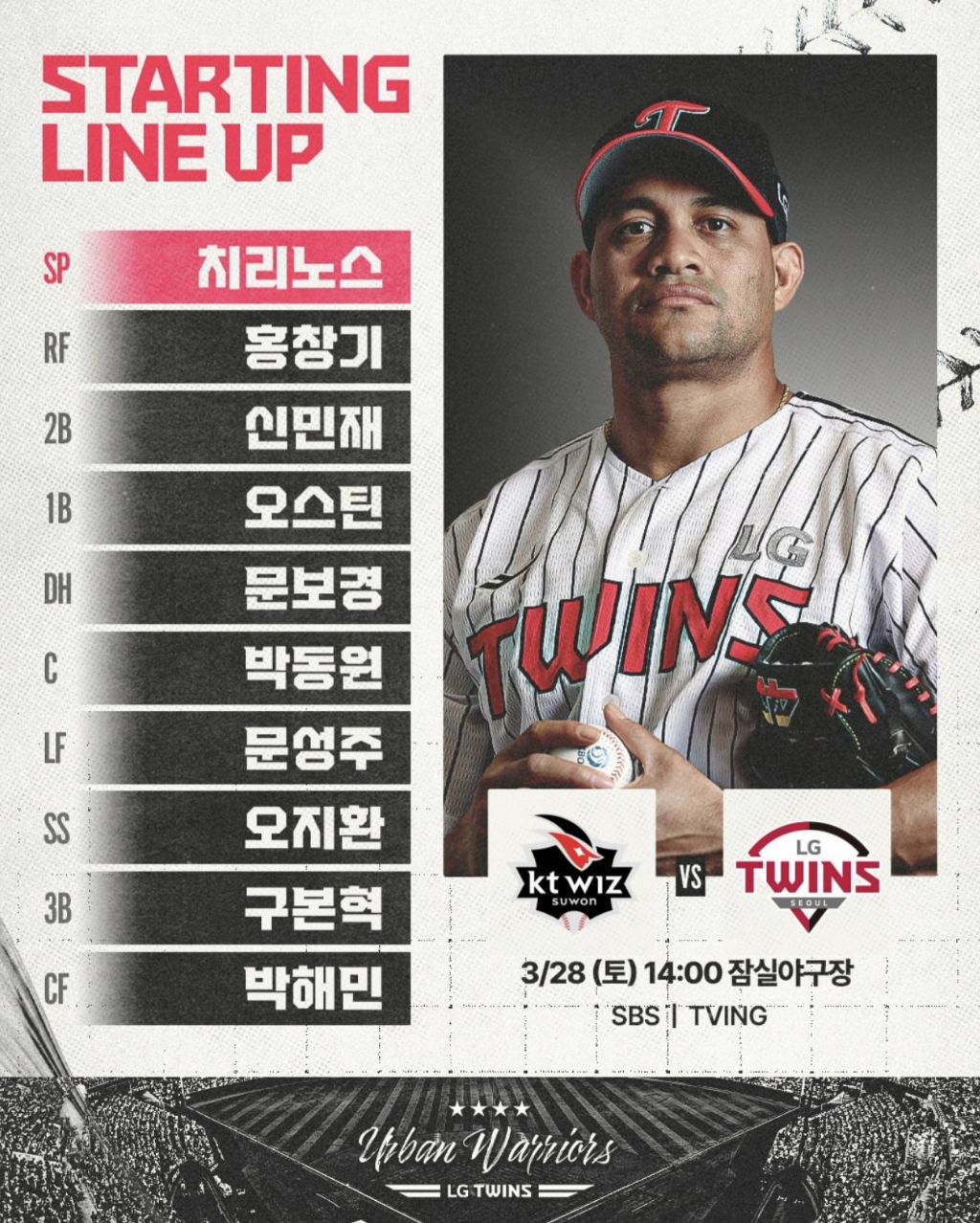 [LG]엘지 라인업 작성자안성맞춤|작성시간26.03.28|조회수72 목록 댓글 3 글자크기 작게가 글자크기 크게가 일단 첫경기는 빅보이 제외네요 다음검색 현재 게시글 추가 기능 열기 북마크 공유하기 신고 센터로 신고 댓글 댓글 3 댓글쓰기 답글쓰기 댓글 리스트 작성자가버먼트(였던것) | 작성시간 26.03.28 new 봐줘.. ㅈㄴ 쌔다 답댓글 작성자안성맞춤 작성자 본인 여부 작성자 | 작성시간 26.03.28 new 다음주에 혼날준비 하십쇼 후후 작성자타루 | 작성시간 26.03.28 new 베스트라인업인듯 문보가지타라서ㅠㅠ 댓글 전체보기