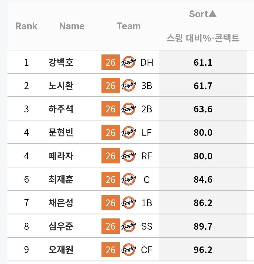 얻떡계 고졸 신인이 컨택 1위ㅋㅋㅋ
