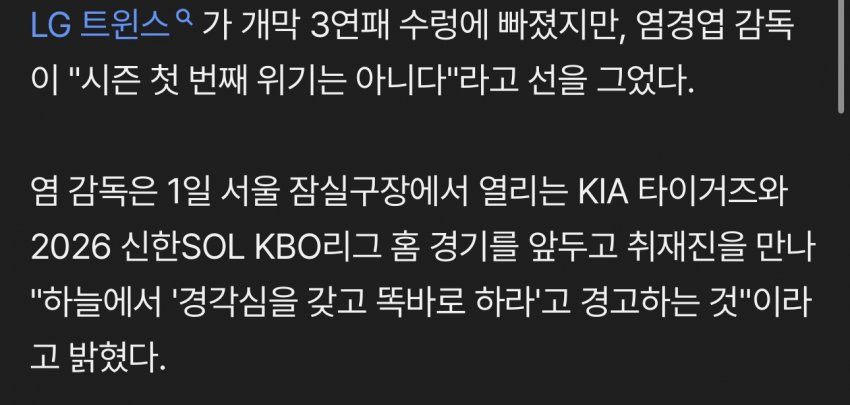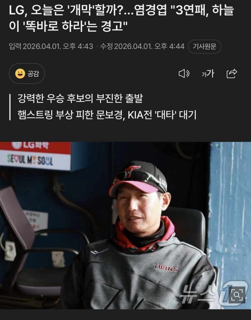 [LG]염경엽 : 3연패는 하늘이 똑바로 하라는 경고 작성자주린이헬린이엘린이|작성시간26.04.01|조회수205 목록 댓글 4 글자크기 작게가 글자크기 크게가 오늘도 1,2회에 겜터지면 걍 도게자 박으세요.헛소리하지 마시고 다음검색 현재 게시글 추가 기능 열기 북마크 공유하기 신고 센터로 신고 댓글 댓글 4 댓글쓰기 답글쓰기 댓글 리스트 작성자행복했으면좋겠다 | 작성시간 26.04.01 new 엘삼키 어디가 먼저 1승할지.. 작성자SNist | 작성시간 26.04.01 new 그럼 12연패는 뭔데요 답댓글 작성자messi on the bed | 작성시간 26.04.01 new '엄중경고' 작성자뇌손상 | 작성시간 26.04.01 new 하늘보고 야구함? 시즌준비를 ㅈ같이 한거지 댓글 전체보기