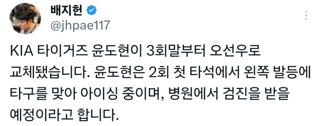 [KIA]오늘 도현 도영 둘다 깨졌네요? 작성자미나토자키 사나|작성시간26.04.01|조회수139 목록 댓글 3 글자크기 작게가 글자크기 크게가 시즌 종료 하겠습니다 다음검색 현재 게시글 추가 기능 열기 북마크 공유하기 신고 센터로 신고 댓글 댓글 3 댓글쓰기 답글쓰기 댓글 리스트 작성자내꿈은롯데우승보ㄱI | 작성시간 26.04.01 김도영도요? 답댓글 작성자미나토자키 사나 작성자 본인 여부 작성자 | 작성시간 26.04.01 다이빙 하다가 허리 삐끗하고 교체 아웃 답댓글 작성자내꿈은롯데우승보ㄱI | 작성시간 26.04.01 미나토자키 사나 에반데 아시안게임 전까지 건강해야하는데 댓글 전체보기