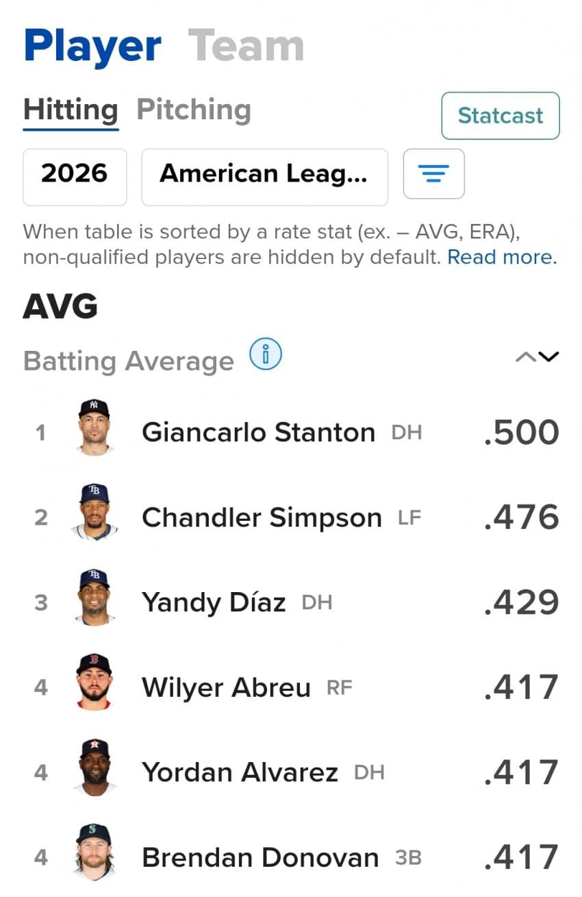 [해외야구]타격왕 순위 작성자내꿈은롯데우승보ㄱI|작성시간26.04.02|조회수209 목록 댓글 1 글자크기 작게가 글자크기 크게가 미국도 만우절이 있나 다음검색 현재 게시글 추가 기능 열기 북마크 공유하기 신고 센터로 신고 댓글 댓글 1 댓글쓰기 답글쓰기 댓글 리스트 작성자뇌손상 | 작성시간 26.04.02 new 튼튼신의 가호 댓글 전체보기