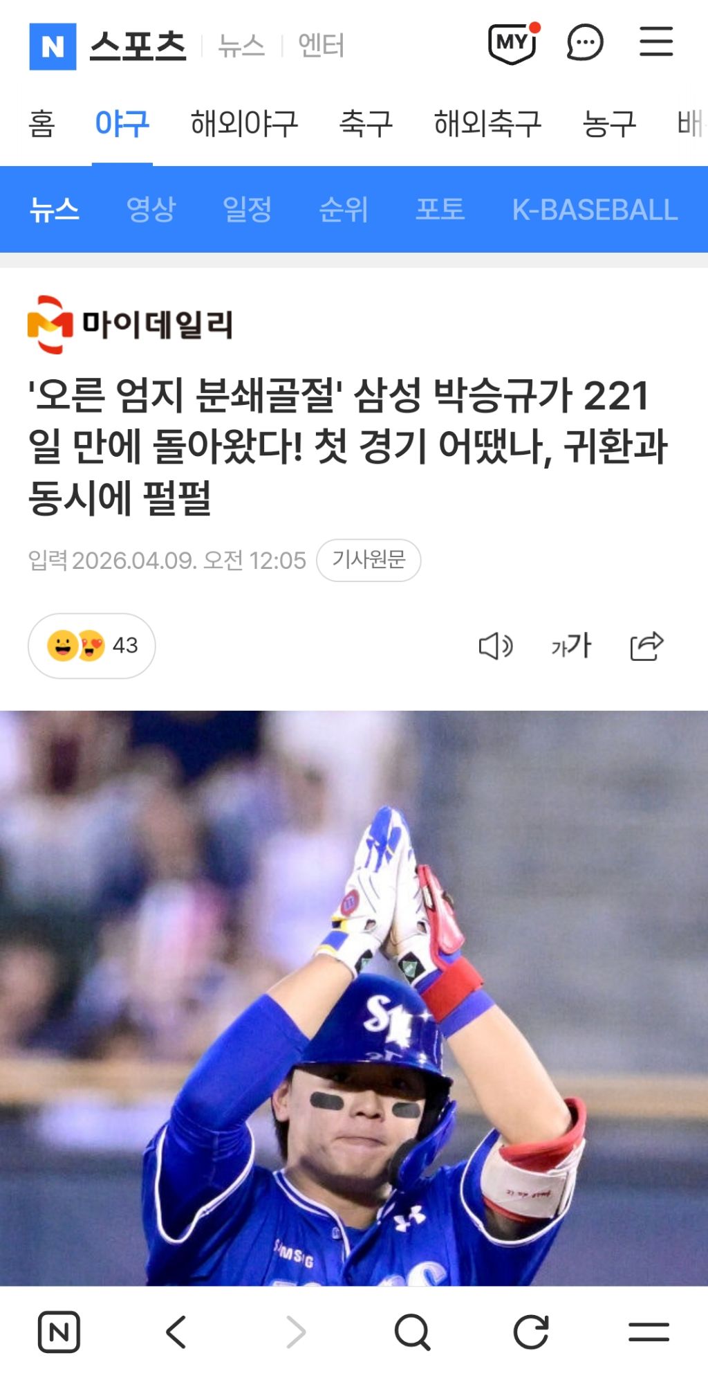 [삼성]승규 복귀했구나 작성자DK LUCID|작성시간26.04.09|조회수337 목록 댓글 1 글자크기 작게가 글자크기 크게가 드디어 .. 다음검색 현재 게시글 추가 기능 열기 북마크 공유하기 신고 센터로 신고 댓글 댓글 1 댓글쓰기 답글쓰기 댓글 리스트 작성자삼성 강민호2 | 작성시간 26.04.09 new 팡팡규 복귀 ㅅㅅㅅ 날아오르자 댓글 전체보기