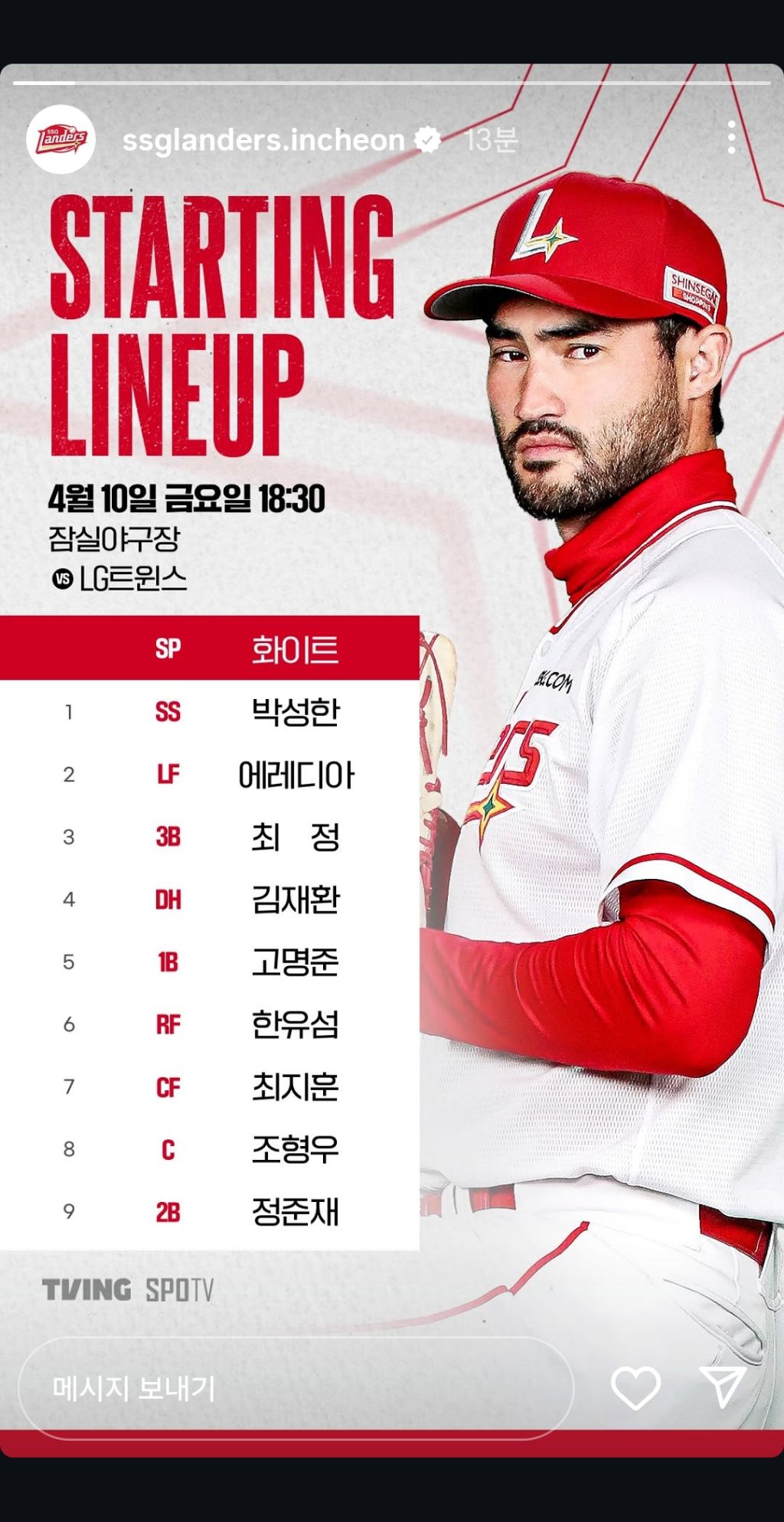 [SSG]라인업 작성자연중무휴|작성시간26.04.10|조회수57 목록 댓글 3 글자크기 작게가 글자크기 크게가 다음검색 현재 게시글 추가 기능 열기 북마크 공유하기 신고 센터로 신고 댓글 댓글 3 댓글쓰기 답글쓰기 댓글 리스트 작성자관람하는관람차 | 작성시간 26.04.10 new 저중에서 엘지상대로 제일 무서운게 JJJ. 무슨 이치로처럼 나가면 안타치고 도루하고 다함 작성자Bobtobob | 작성시간 26.04.10 new 하 준재야.. 작성자헬리코박터프로젝트윌 | 작성시간 26.04.10 new 아직도 수납을 안해??? 댓글 전체보기