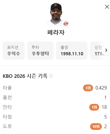 [한화]페라자 안타 1위?? ㄷㄷ 작성자Las〃|작성시간26.04.10|조회수69 목록 댓글 1 글자크기 작게가 글자크기 크게가 다음검색 현재 게시글 추가 기능 열기 북마크 공유하기 신고 센터로 신고 댓글 댓글 1 댓글쓰기 답글쓰기 댓글 리스트 작성자르롸르듸루 | 작성시간 26.04.10 new 안타왕 ㄱㅈㅇ 댓글 전체보기