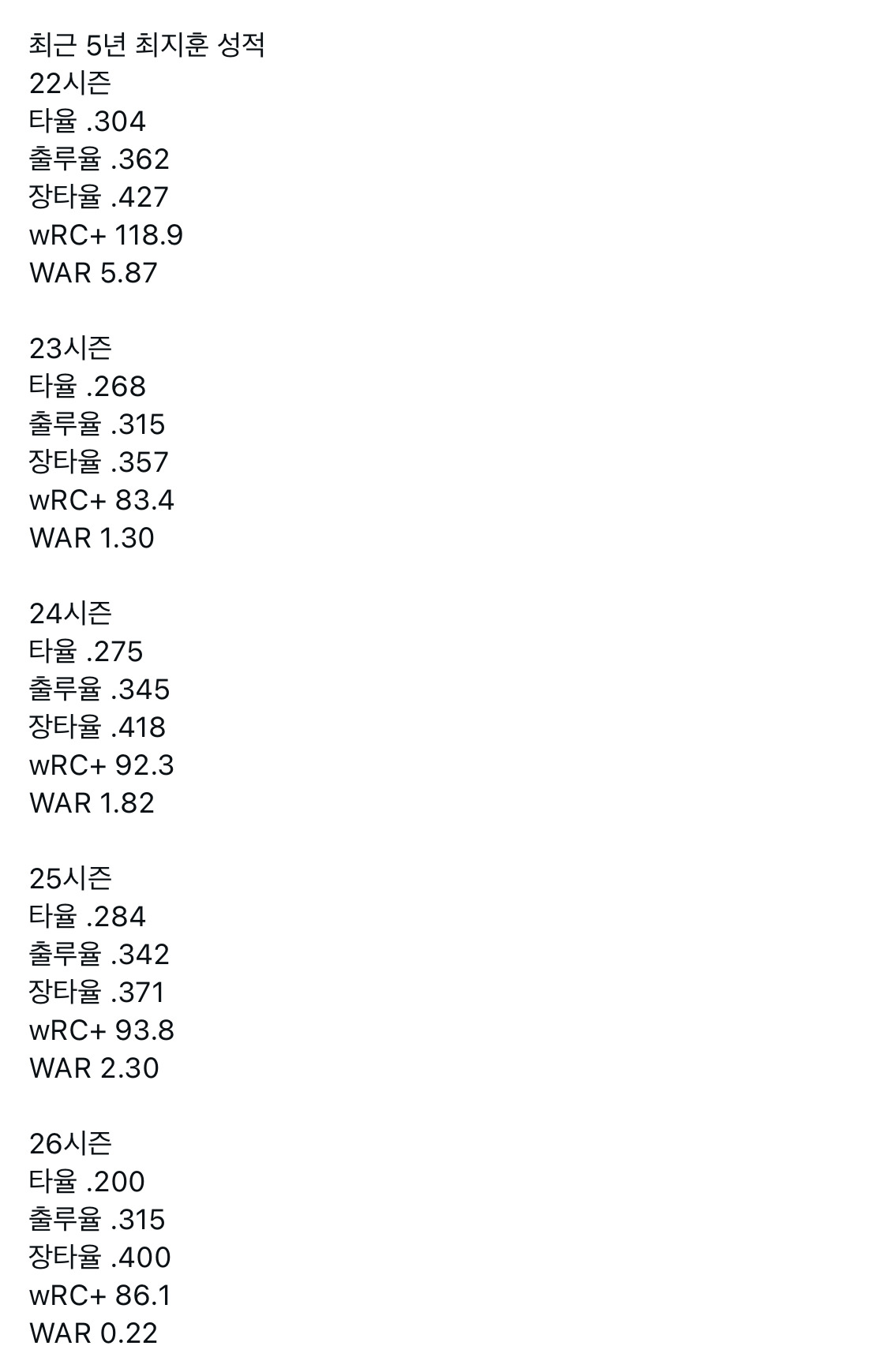 댓글보니 ssg에선 그정도면 안잡는게 낫다하는거도 종종잇든데 좋은선수같긴한데 기록은 또 생각보다 영 별로군요