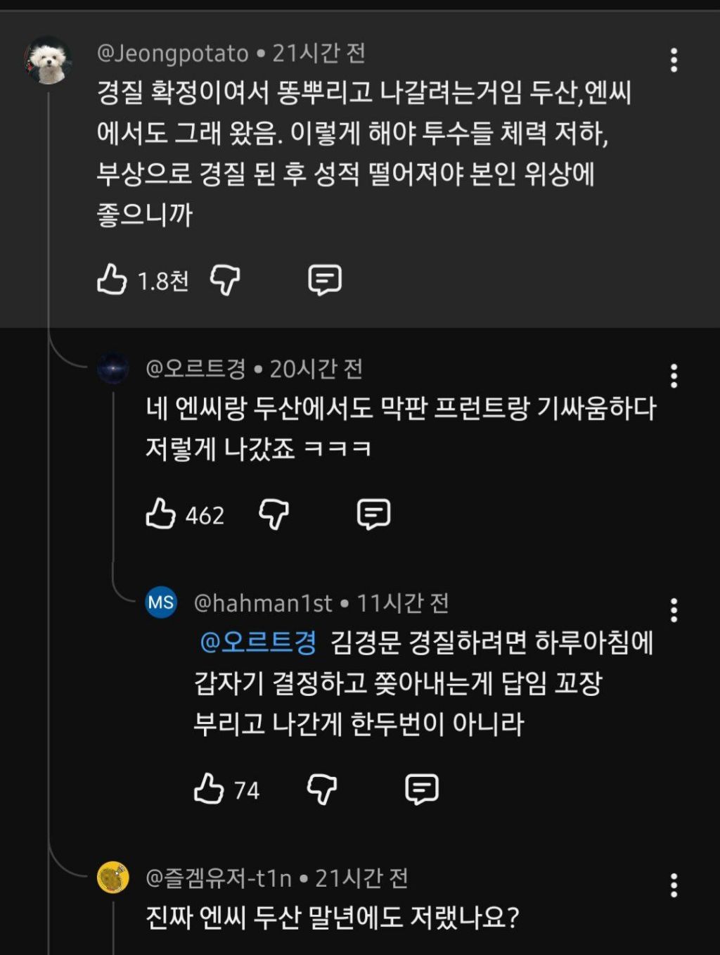 [한화]진짜 이 댓글처럼 하는 중 같은데 작성자변 검|작성시간26.04.23|조회수173 목록 댓글 2 글자크기 작게가 글자크기 크게가 두산엔씨야구보신분들이 알겠지만 다음검색 현재 게시글 추가 기능 열기 북마크 공유하기 신고 센터로 신고 댓글 댓글 2 댓글쓰기 답글쓰기 댓글 리스트 작성자Kiklop7 | 작성시간 26.04.23 ㅇㅈㅇㅈ 작성자르롸르듸루 | 작성시간 26.04.23 사실 그거아니면 답이없음 썰쟁이가 이번주 NC전쯤 답나온다고했으니... 댓글 전체보기