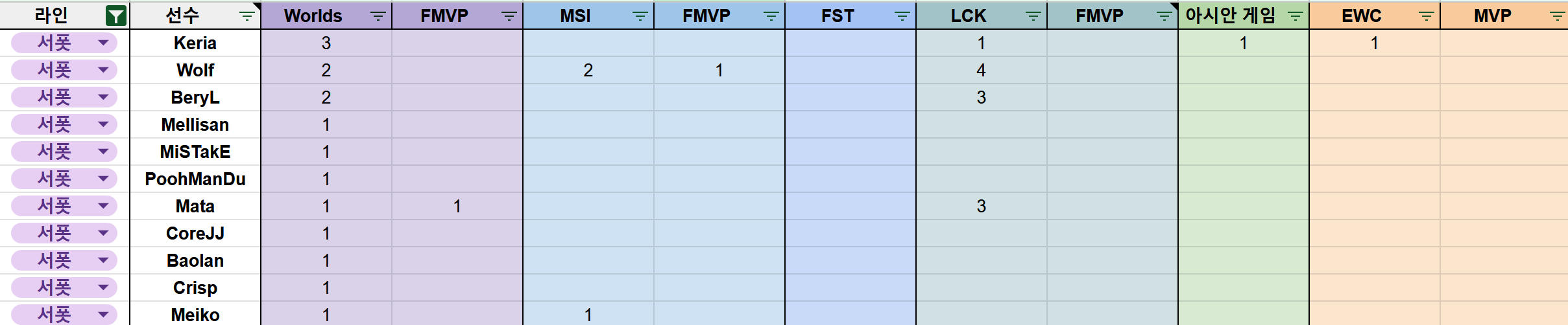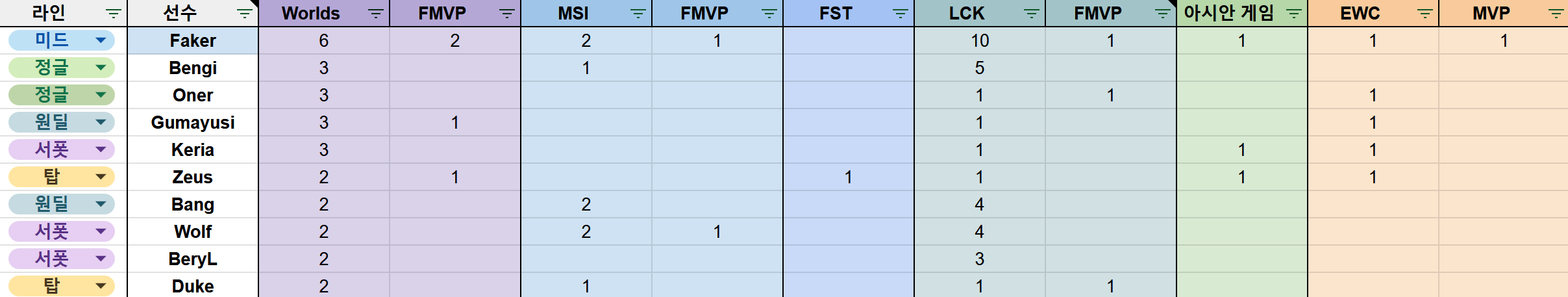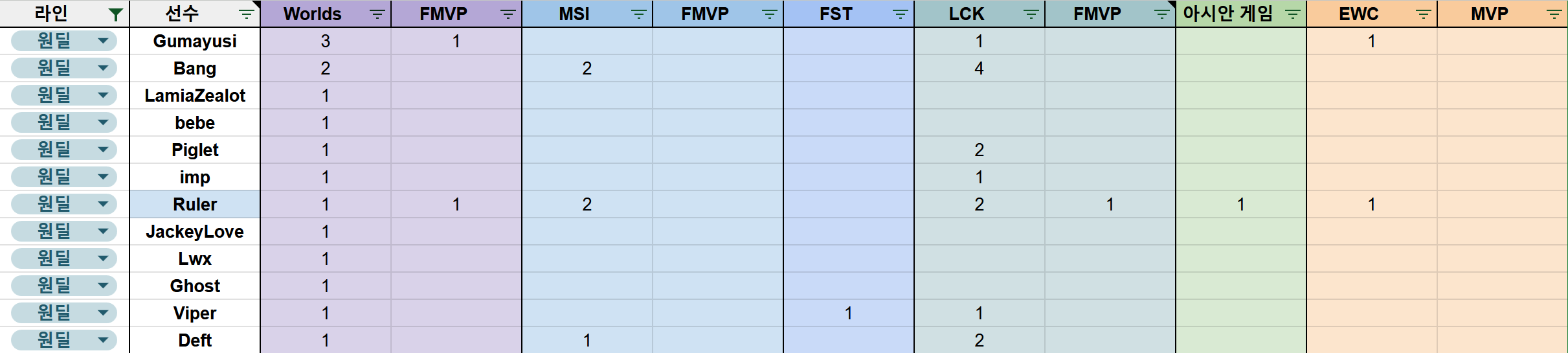 귀찮아서 리그 기록은 LPL 기록은 다 제외하고, LCK만 기록함.
