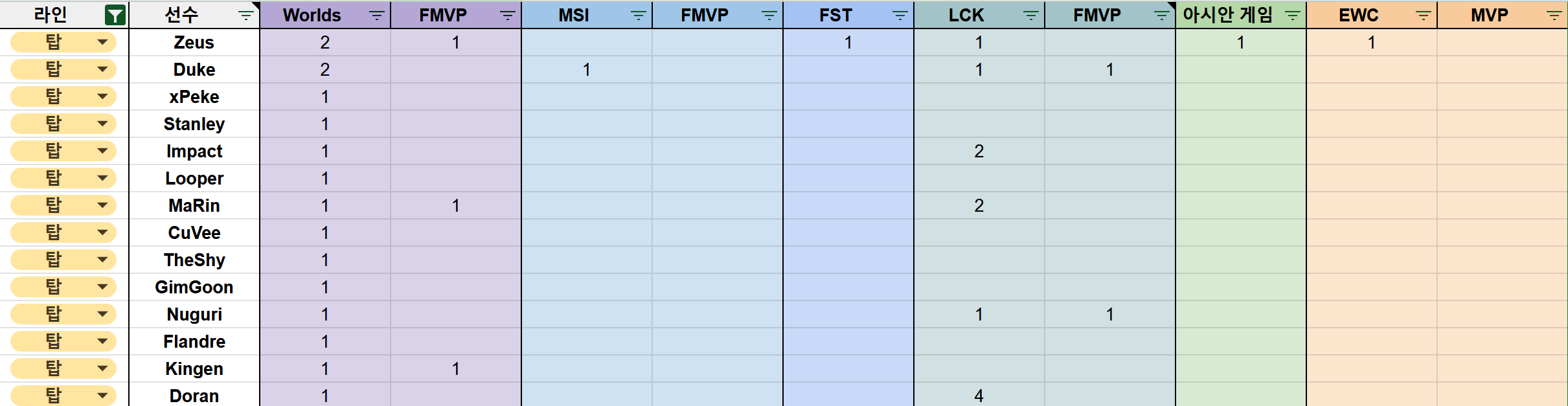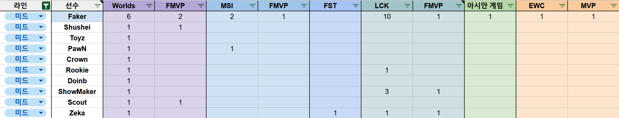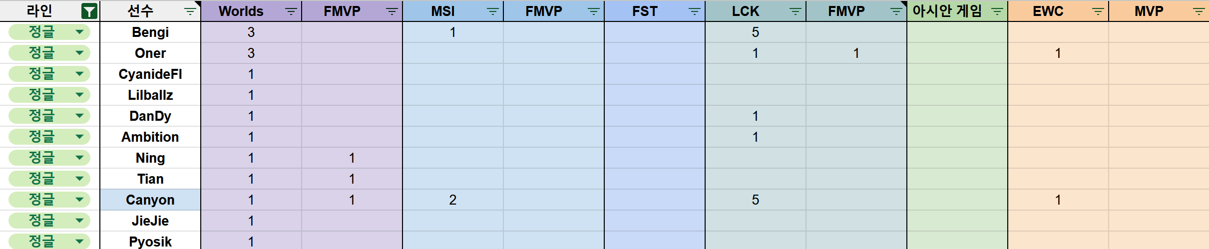 귀찮아서 리그 기록은 LPL 기록은 다 제외하고, LCK만 기록함.