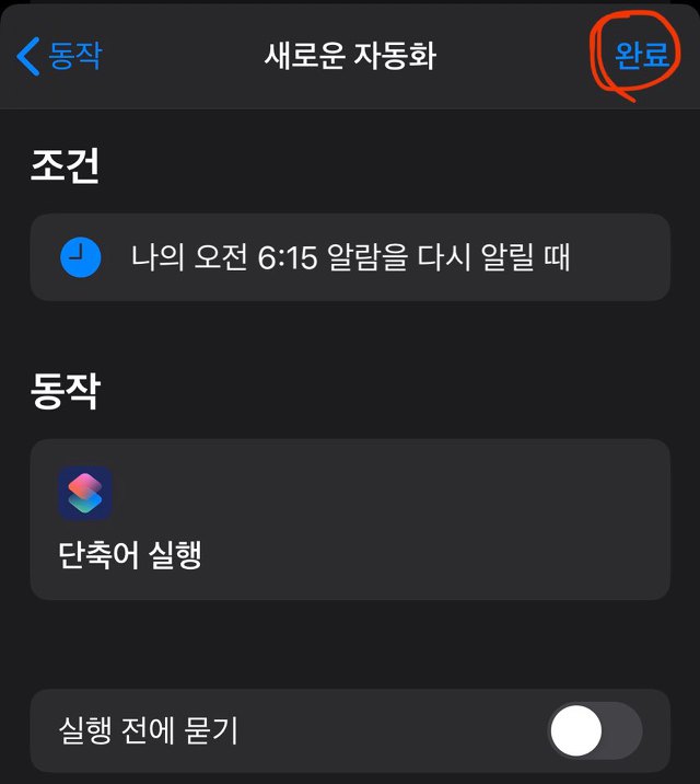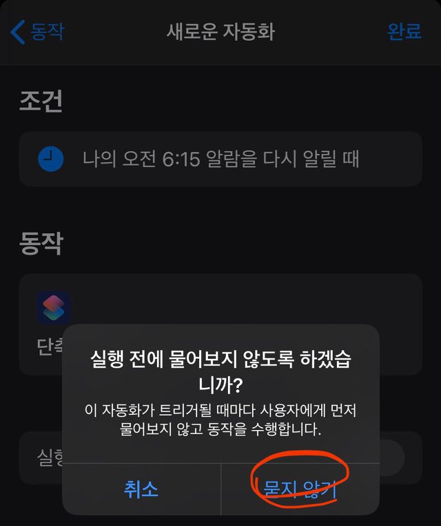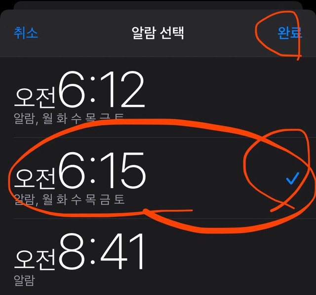 평소에 사용하는 알람 선택하시고 완료 누르시면 됩니다.