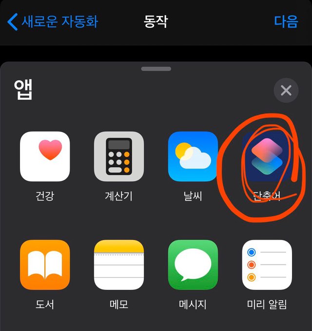 아래사진처럼 나오면 ‘파란색상 단축어’ 클릭클릭