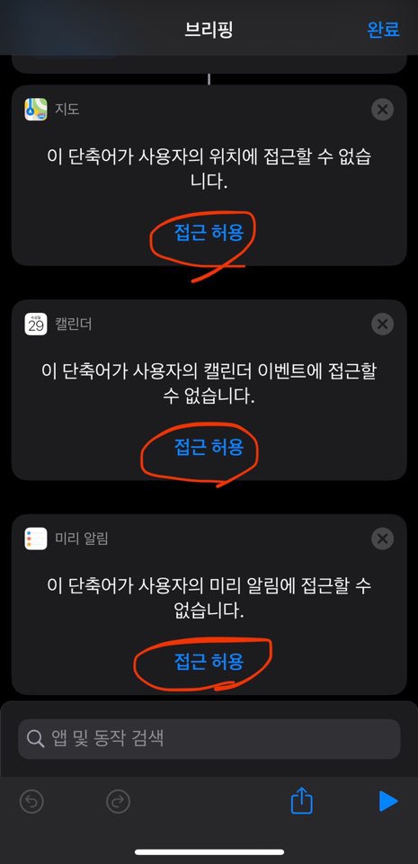 지도, 캘린더, 미리알림에 접근 허용이 있는데 전부 눌러주세요