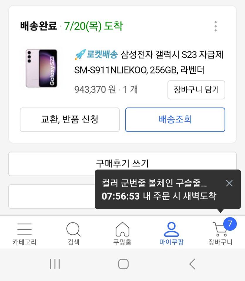 아래처럼 쿠팡에서 갤S23 자급제 지른거 있는데,