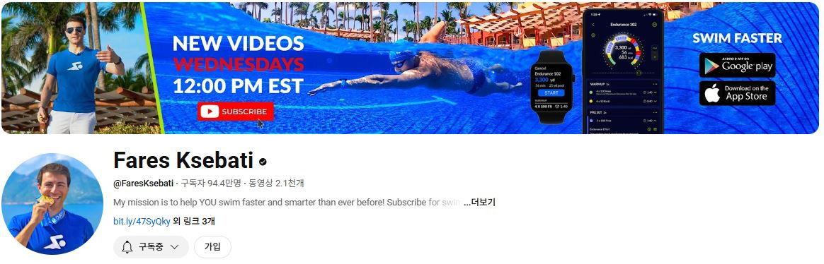 국내 수영유투버들도 참고를 많이 하고 있는 채널이고,