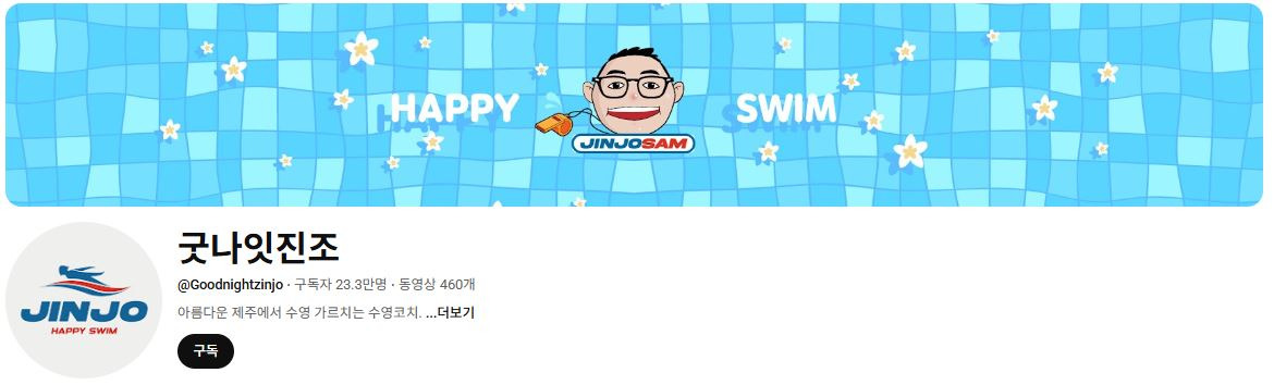 이밖에 왕성하게 활동하는 수영채널 두세개 더 비추를 주고 싶지만 대표적으로 굿나잇진조 찍겠습니당