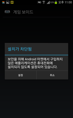 바로 이쪽으로 안들어졌을 경우에 환경설정 -> 보안 -> 알수없는 소스 체크 하시면됩니다.