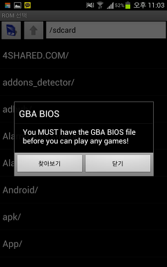 설치하시고 나면 BIOS 파일을 받으라고 하는데 Gameboid 받으실때 같이 받으셨던 바이오스 파일을 찾아 선택해주시면 됩니다.