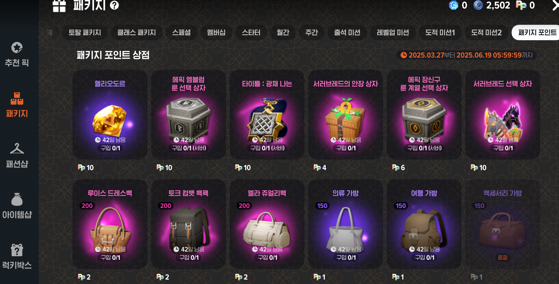 패키지에 들어가셔서 제일 오른쪽에 보시면 패키지포인트 상점있어요