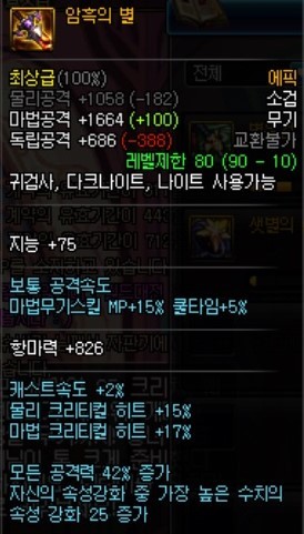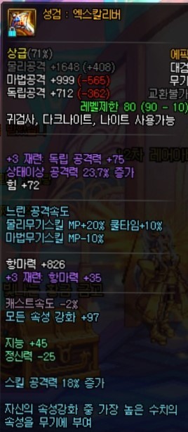 데미지 증가량 47% 이상 (모공증 18% 속강 100 기준)