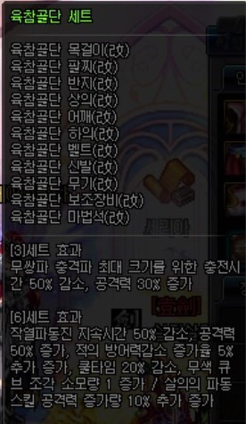 육참골단 6세트를 맞추고 나머지 부위의 장비를 레벨링 아이템을 이용하여 채우게 됩니다.