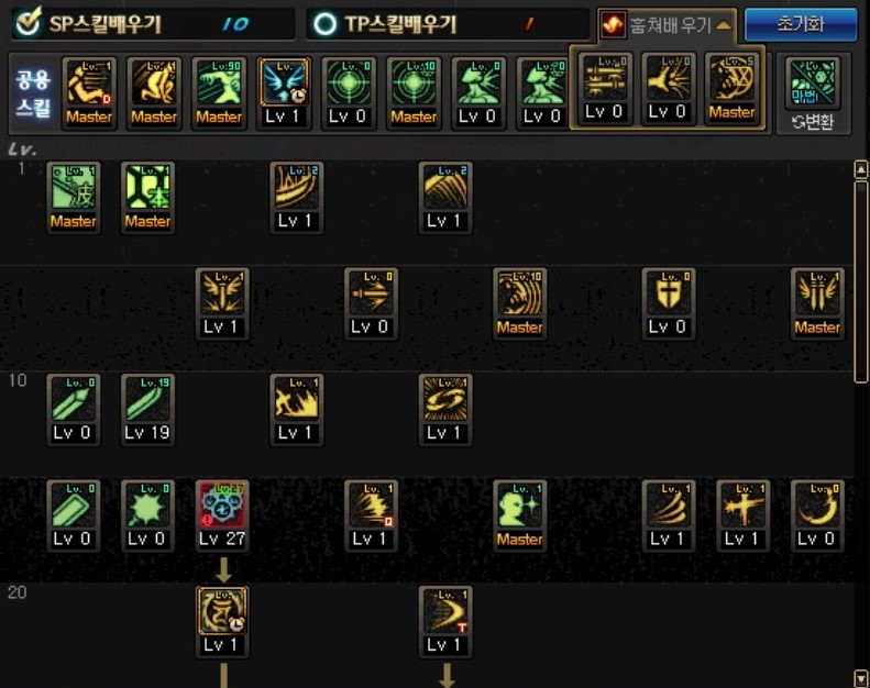 남는 스킬과 TP는 여러분의 취향에 맞게 찍어 주시면 됩니다.
