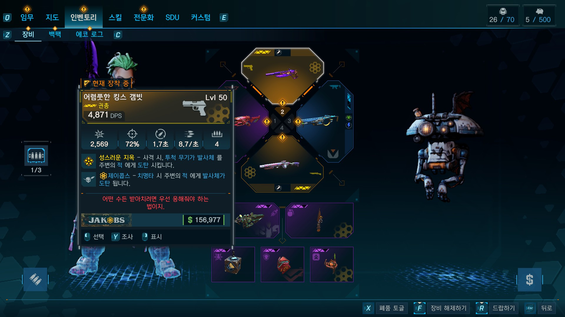 3가지 속성 탄환이 나가서 모든 적에게 다 골고루 좋은.